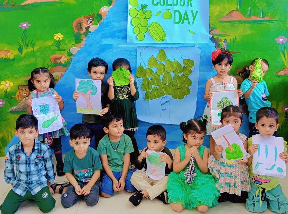 The kindergarten celebrated Green Colour Day on 04 Aug 25 with great enthusiasm and joy. Children and teachers came dressed in shades of green, adding vibrancy to the event. Classrooms were beautifully decorated with green colour creative artwork. Activities like coloring, craft making, and storytelling centered around the green theme kept the little ones engaged and excited. The significance of the color green was explained to the children through fun and interactive sessions.